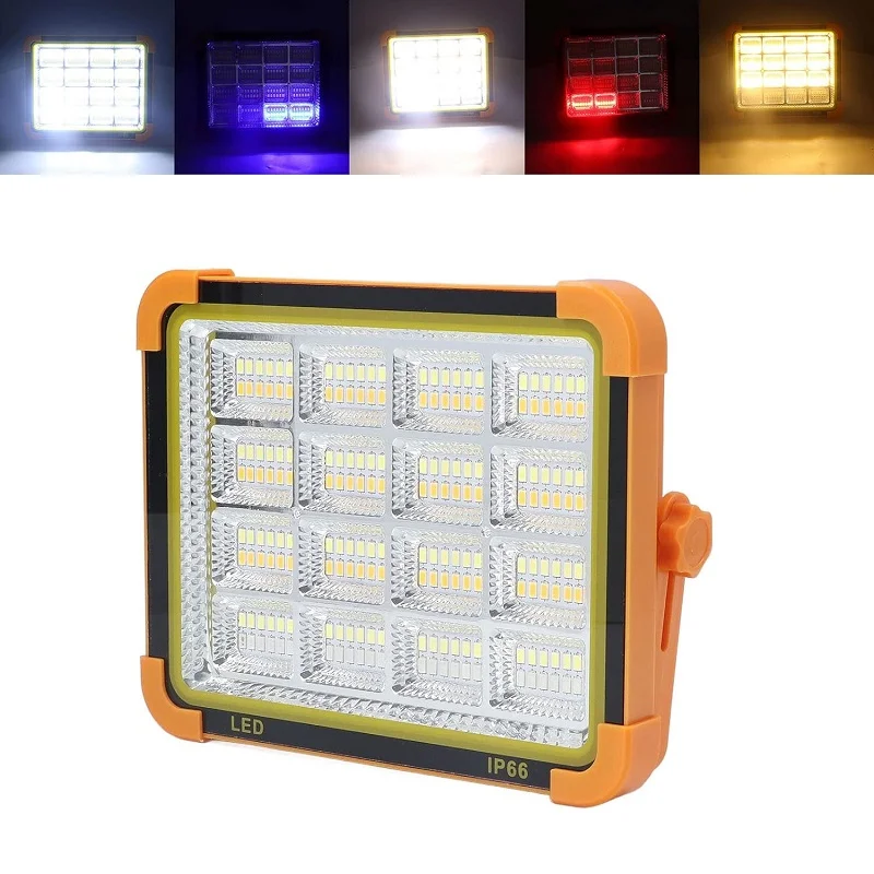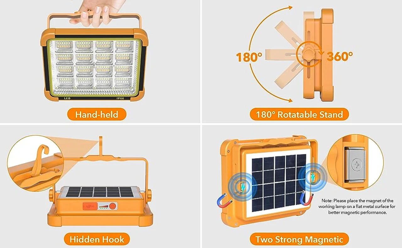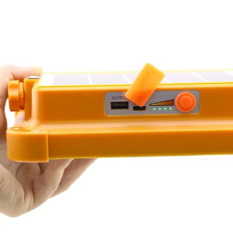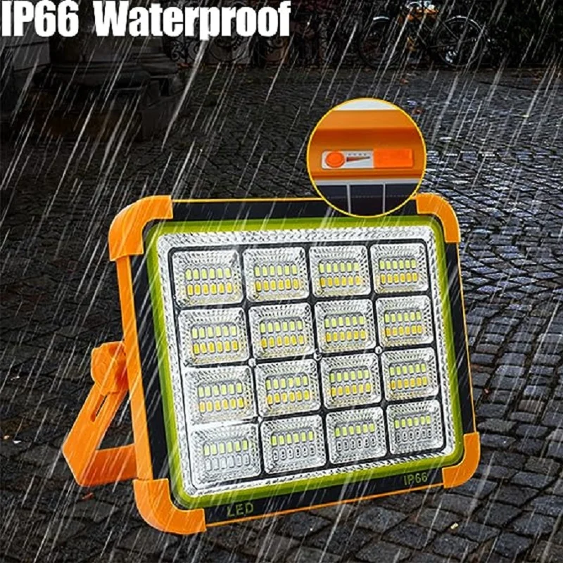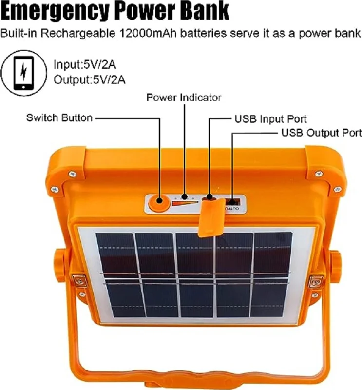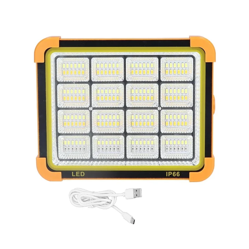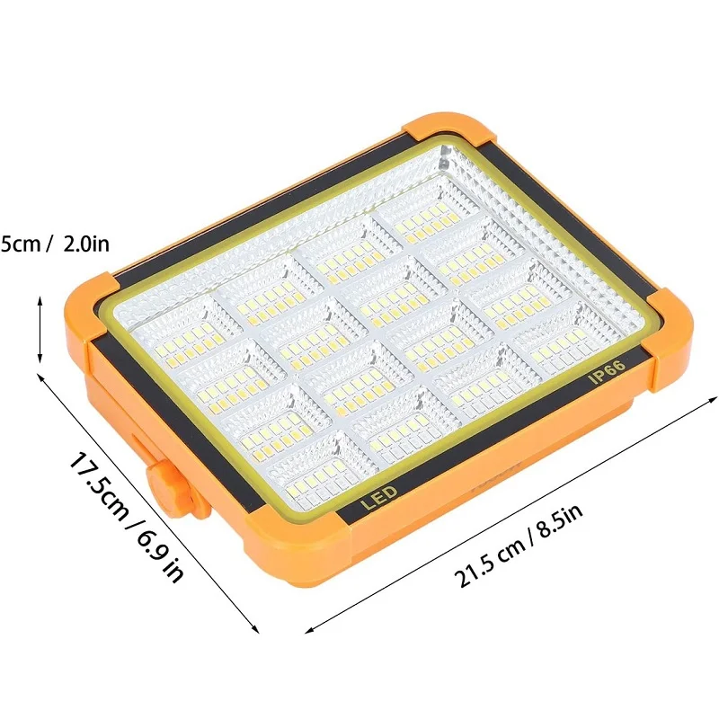 چراغ خورشیدی دستی و پاوربانک دار دارای 192 لامپ SMD و نوردهی خوبی دارد.