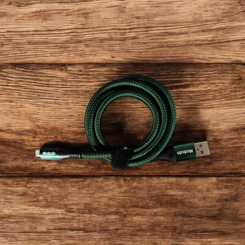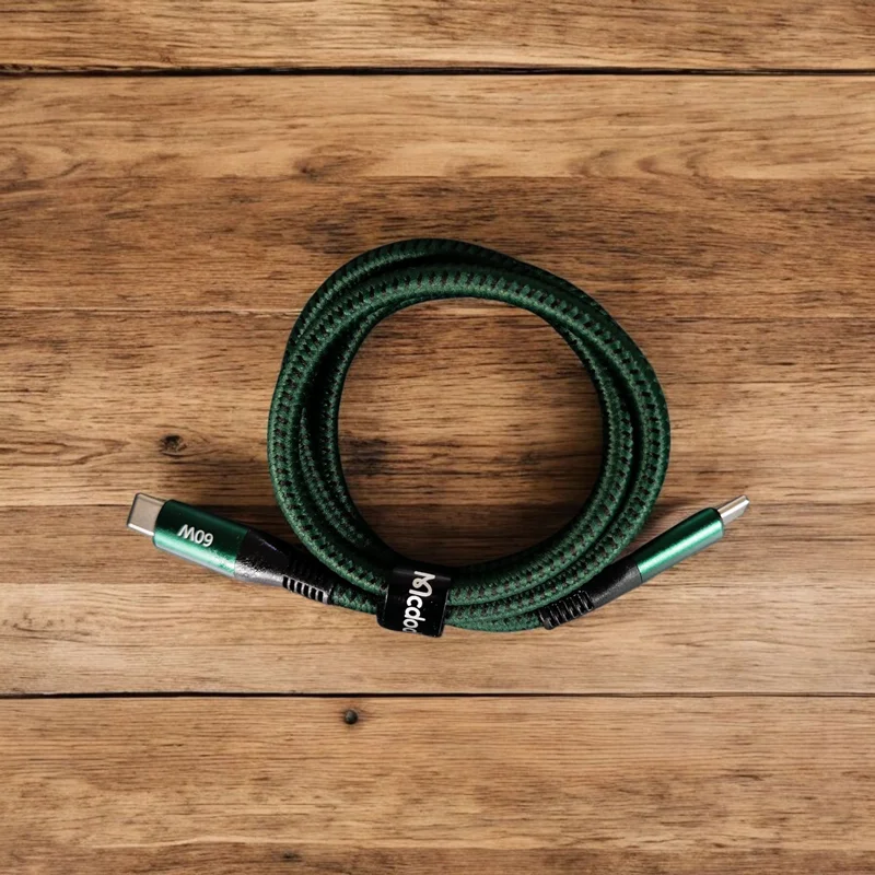 کابل شارژ مکدودو فست شارژ با روکش کنفی و ساختار منعطف دارای محافظ های ضخیم در دو سر کابل برای دوام بیشتر این کابل علاوه بر فست شارژ بودن ، قابلیت انتقال دیتا را نیز دارد ، همچنین توان ارائه خروجی ۶ آمپر را نیز دارد