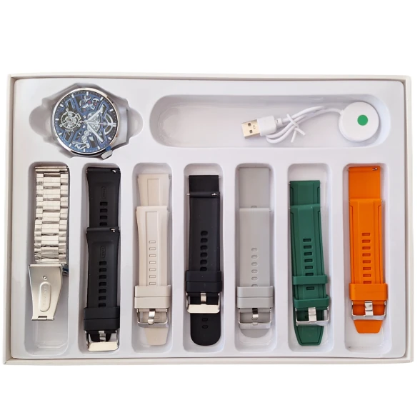 ساعت هوشمند ویسمی مدل Wisme-X39 Max دارای ۷ عدد دستبند که شامل شش عدد سیلیکنی و یک عدد فلزی میشه ، این محصول با صفحه ۴۶ میلی متری بسیار با کیفیت با تاچ بسیار روان بدون گیر و لگ، دارای سخت افزار قدرتمن و کاربردی ای هستش ، قابلیت های این اسمارت واچ از پاسخگویی تماس و نمایش پیامها گرفته تا ضربان شمار ، گام شمار ، ورزشهای مختلف ، پایش خواب و... است ، این محصول یک ساعت هوشمند تمام عیار با قیمت مناسب است