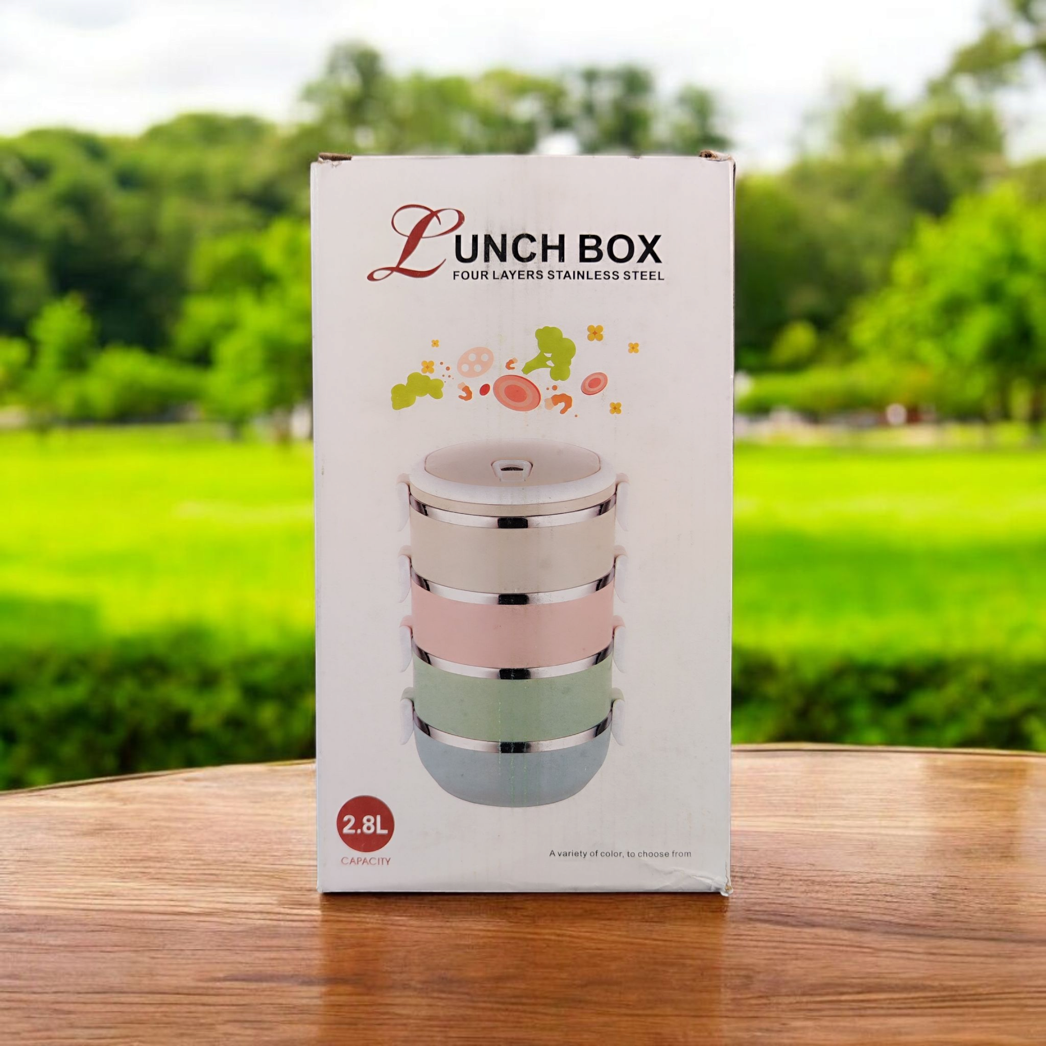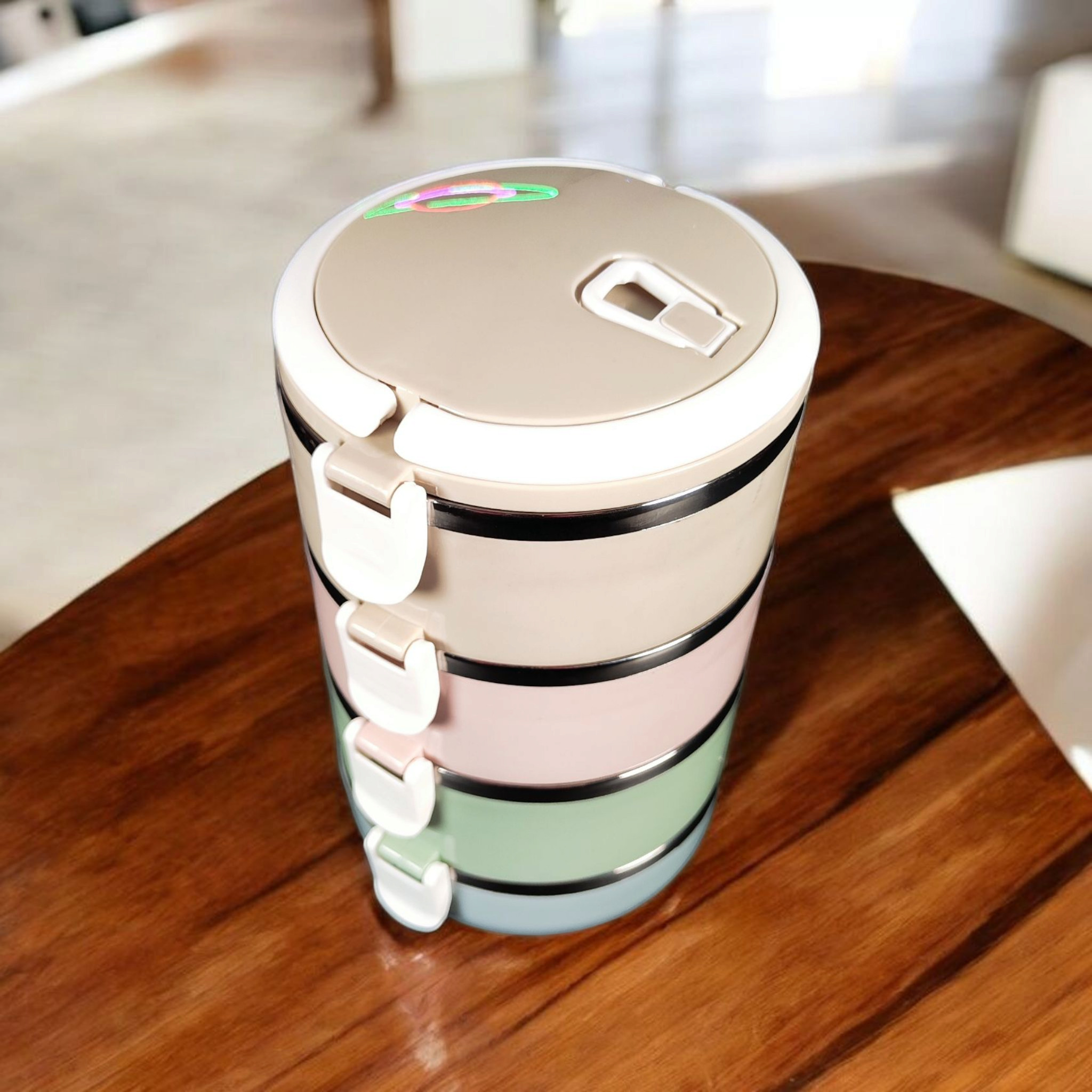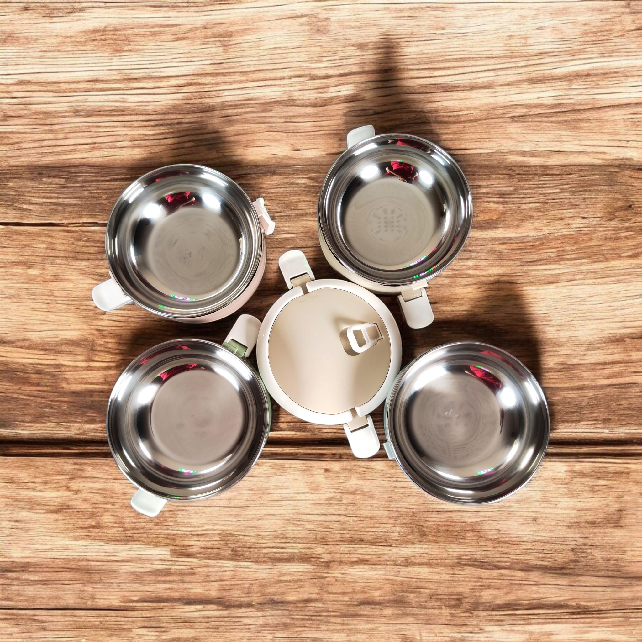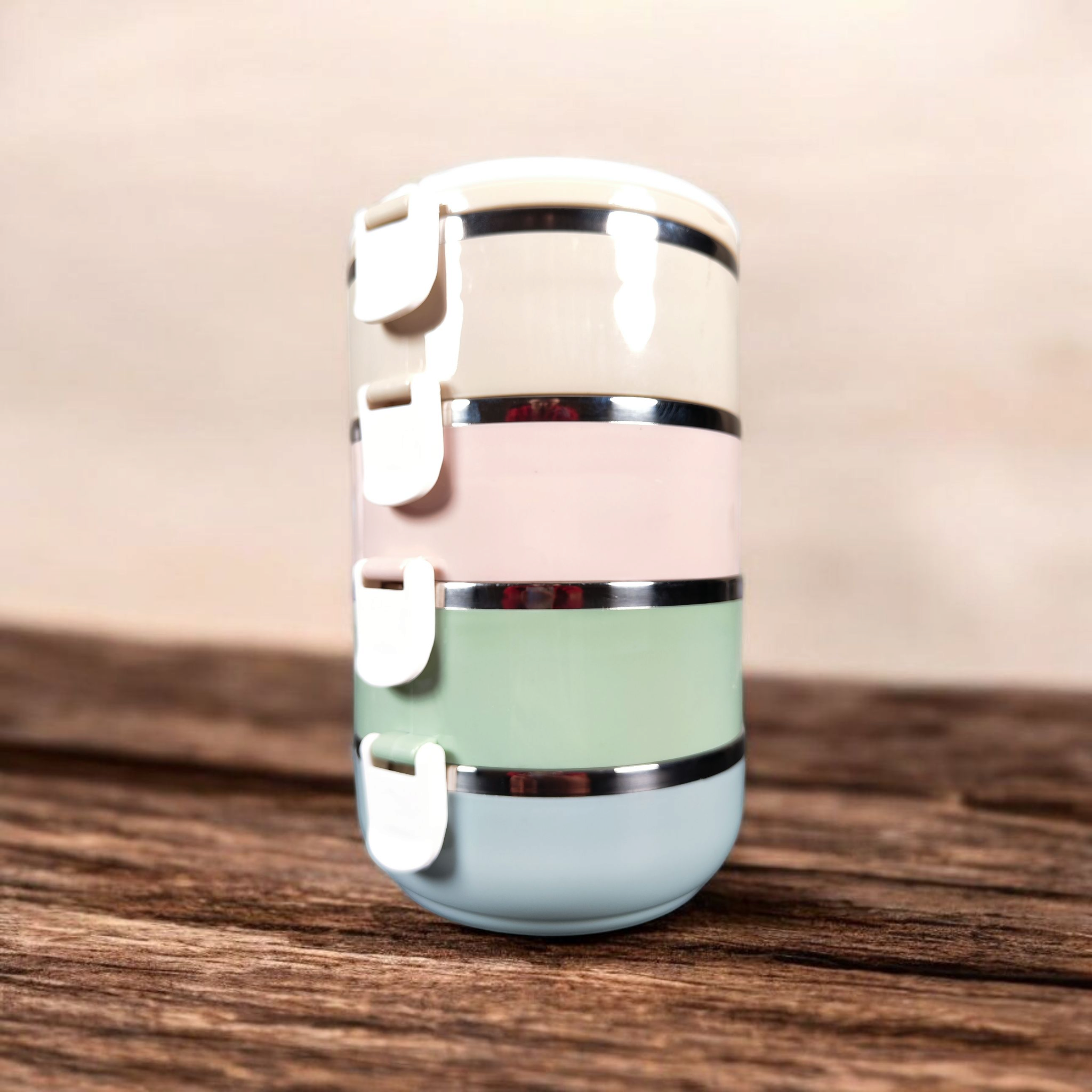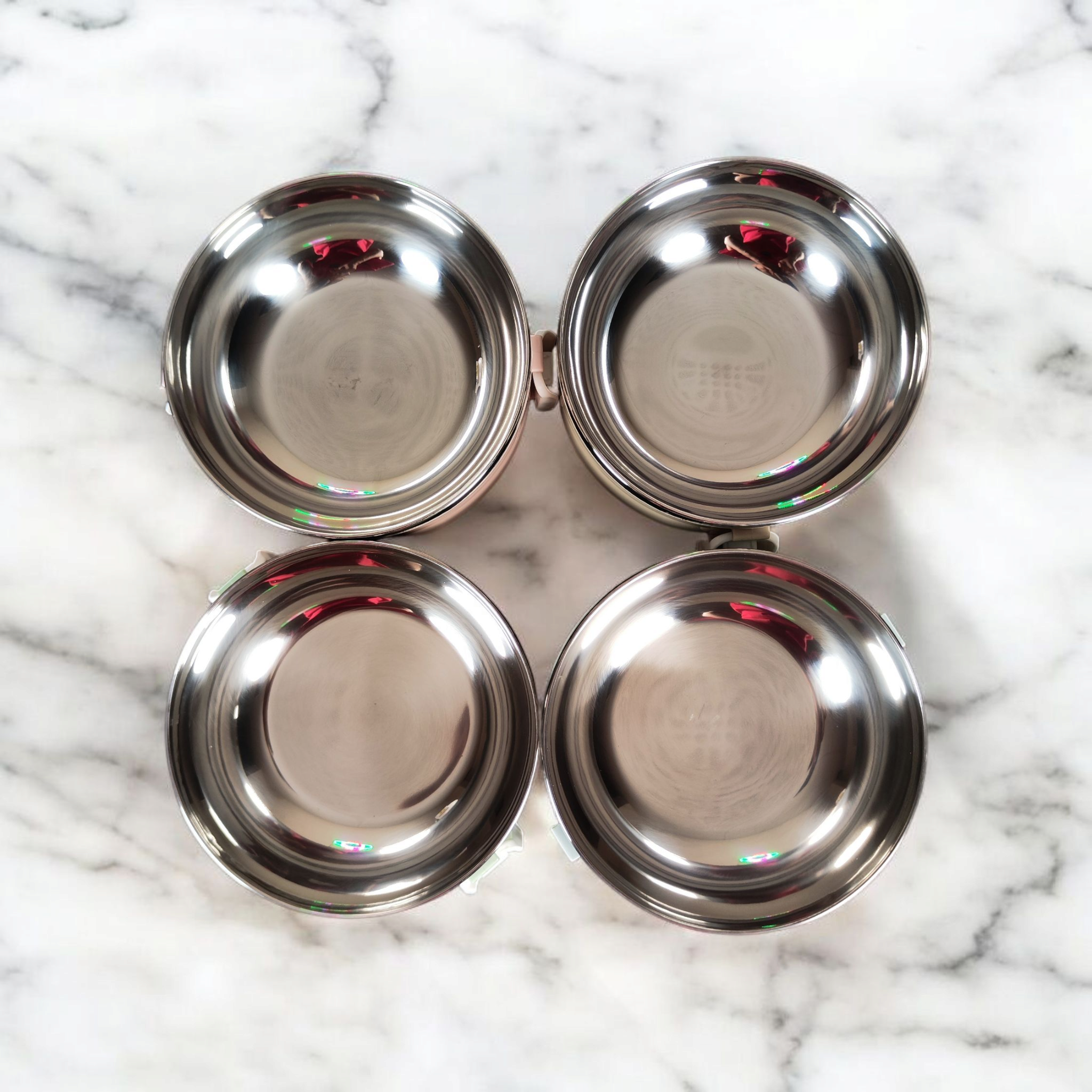 ست ۴ عددی ظرف غذا ساخته شده از استیل و پلاستیک ، دارای درب پلاستیک ، قسمت استیل داخلی وقسمت خارجی پلاستیکی