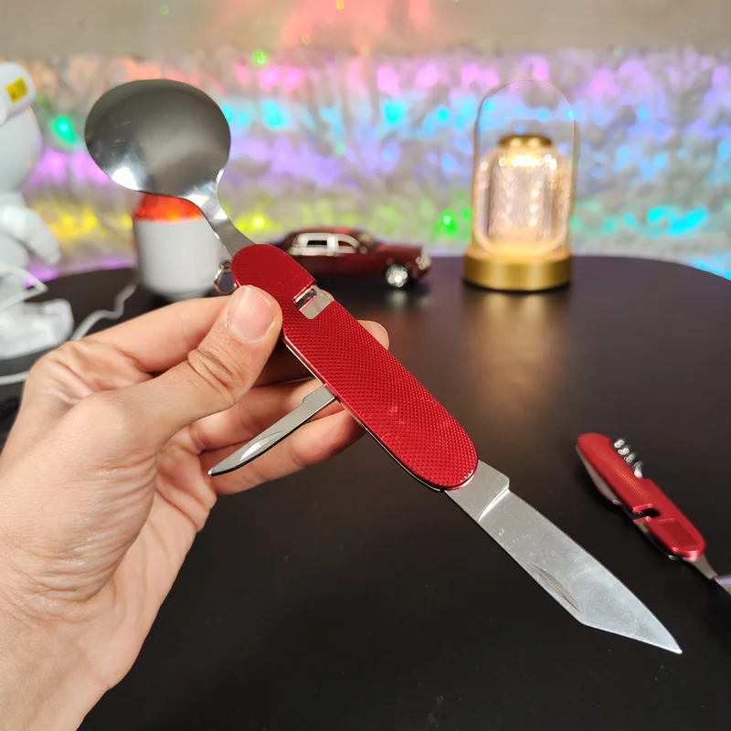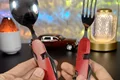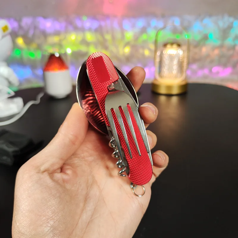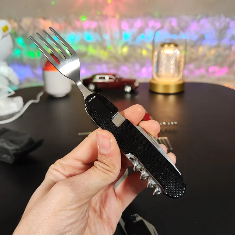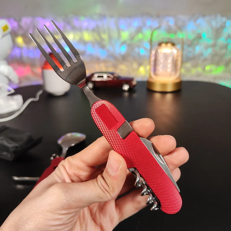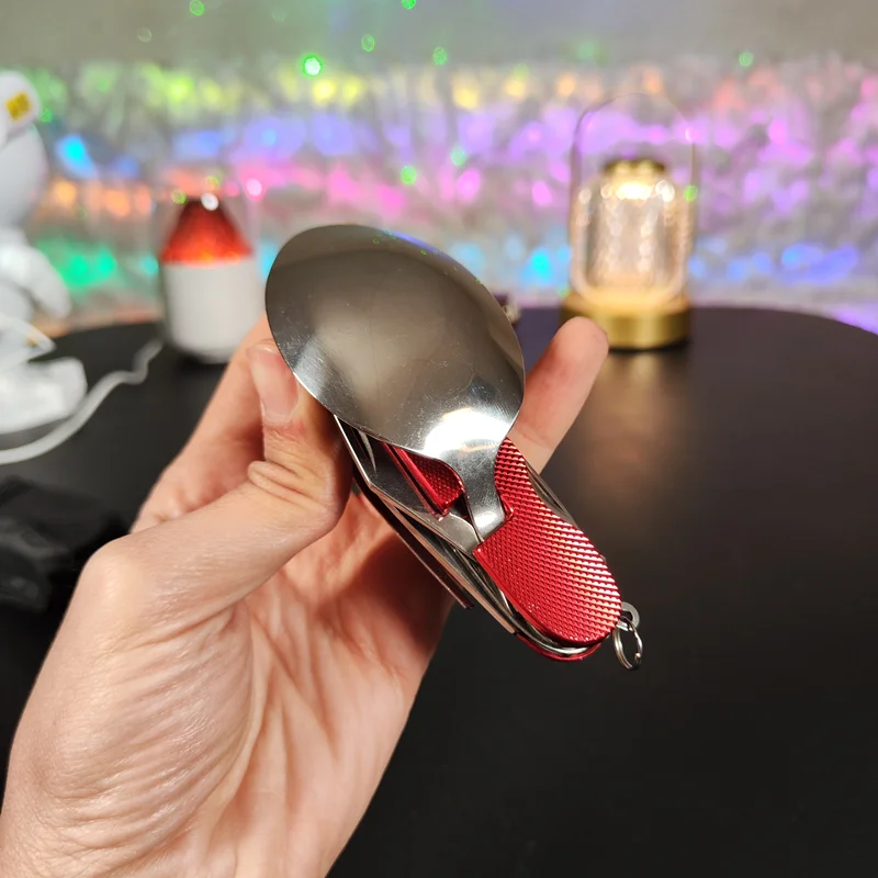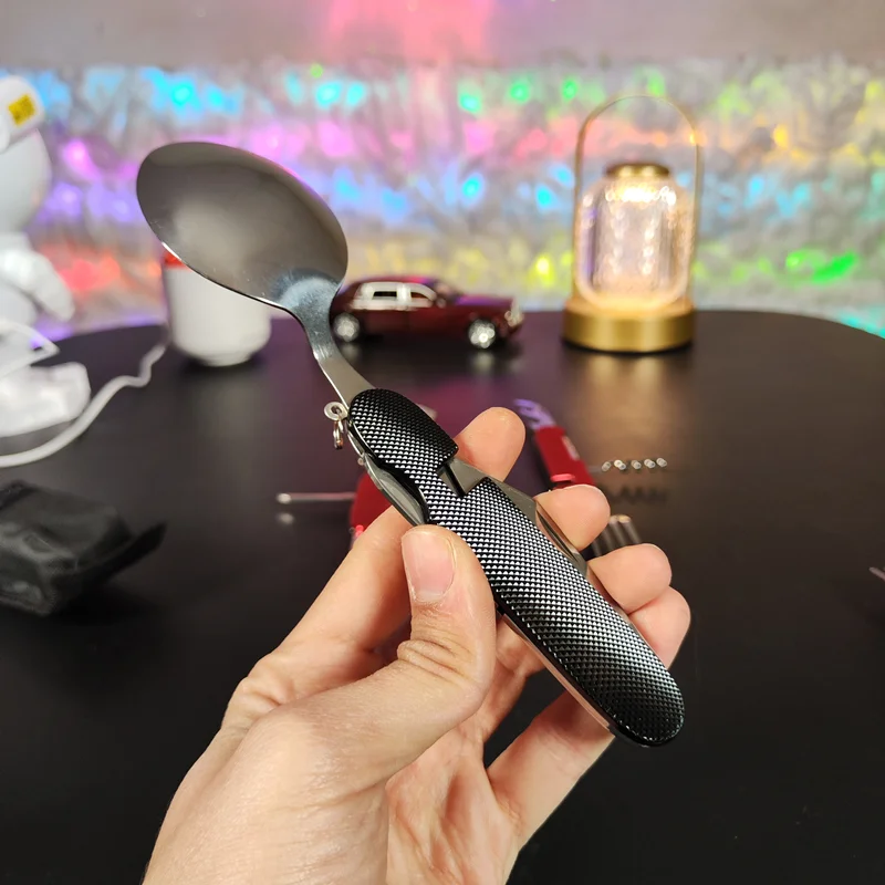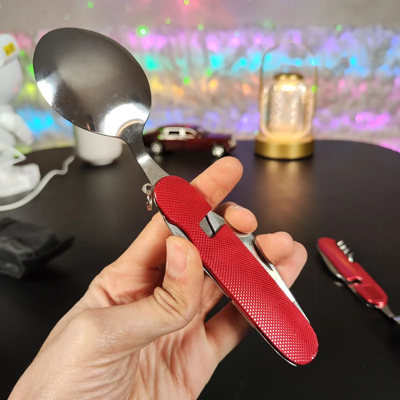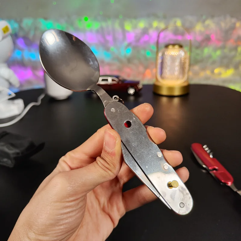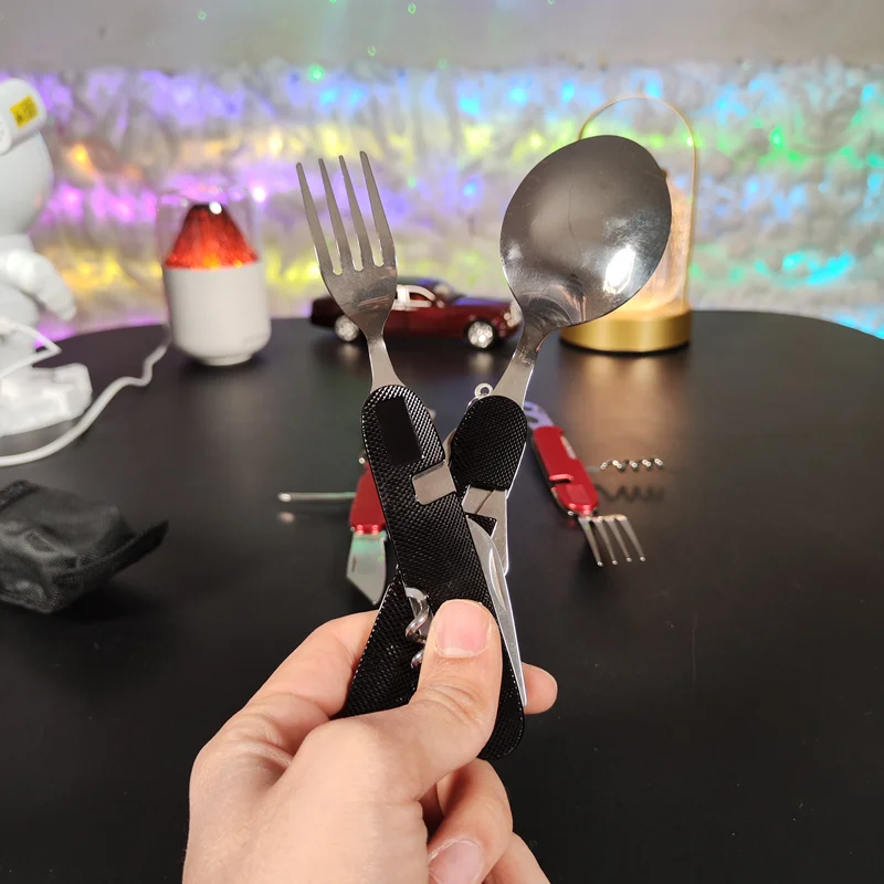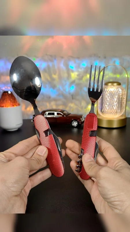 ست کامل قاشق ، چنگال ، چاقو و دربازکن تاشو ساخته شده از استیل ضد زنگ که کاملا بهداشتی و بسیار با دوانه ، خیلی راحت جمع میشه و توی جیبتون قرار میگیره و دیگه نیاز نیست کلی قاشق و چنگال با خودتون حمل کنید