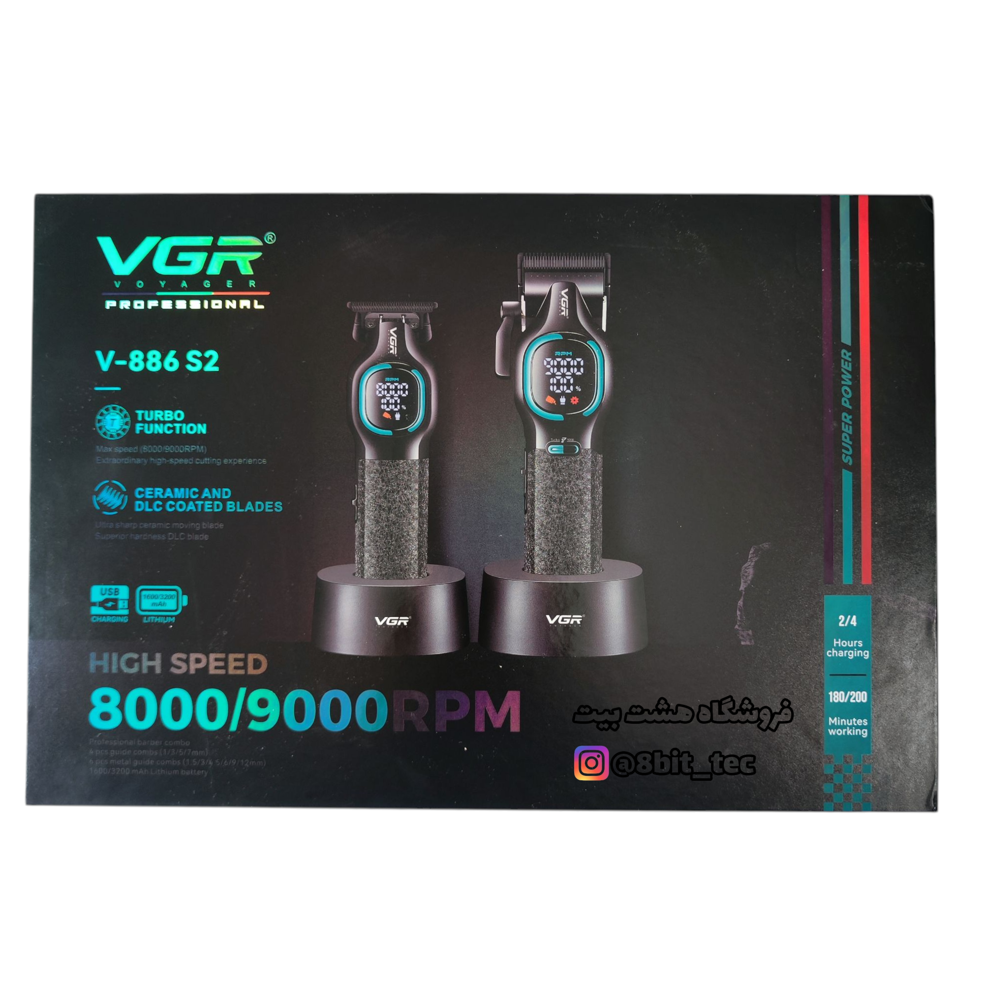 VGR V-886 S2 یک ست دوقلو شارژی است که برای اصلاح موی سر و خط انداختن صورت طراحی شده است. بدنه از ترکیب ABS و آلومینیوم ساخته شده تا در عین سبکی، استحکام و حس پریمیوم را منتقل کند. تیغهی اصلی از جنس سرامیک با پوشش DLC یا فولاد که تعادل خوبی بین تیزی و مقاومت به خوردگی ایجاد میکند؛ این خصوصیت نتیجتاً عمر تیغه را افزایش و نیاز به تیزکاری را کاهش میدهد.