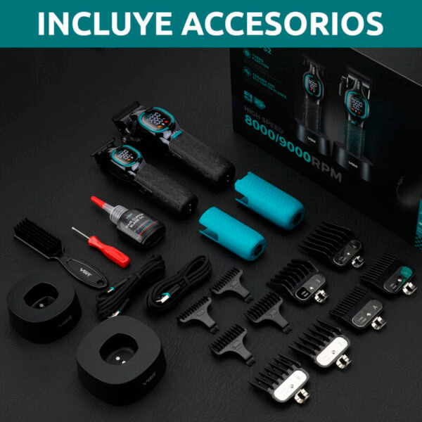 شانهها و اکسسوری کامل: مجموعه شانههای راهنما (چند اندازه از ۱.۵ تا ۱۲ میلیمتر ) و لوازم جانبی مثل برس تمیزکاری، روغن، محافظ و کابل/استند شارژ.