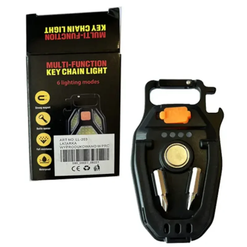 چراغ چند کاره دارای آهن ربا ، ورودی تایپ سی ، دو عدد سری پیچ گوشتی ، دارای دو عدد چراغ COB قرمز ثابت و چشمک زن ، داری قفل کارابین ، چراغ اصلی COB بزرگ بسیار پر نور پایه تاشو ، کاملا ضدآب